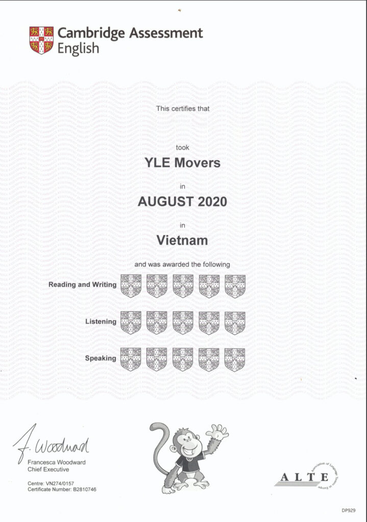 Tìm hiều thêmGiảng dạy Tiếng Anh các trình độ theo khung Châu Âu CEER, thi đạt các chứng chỉ Tiếng Anh quốc tế Cambridge Starters, Movers, Flyers, KET, PET, FCE, CAE, CPE, TOEIC, IELTS.